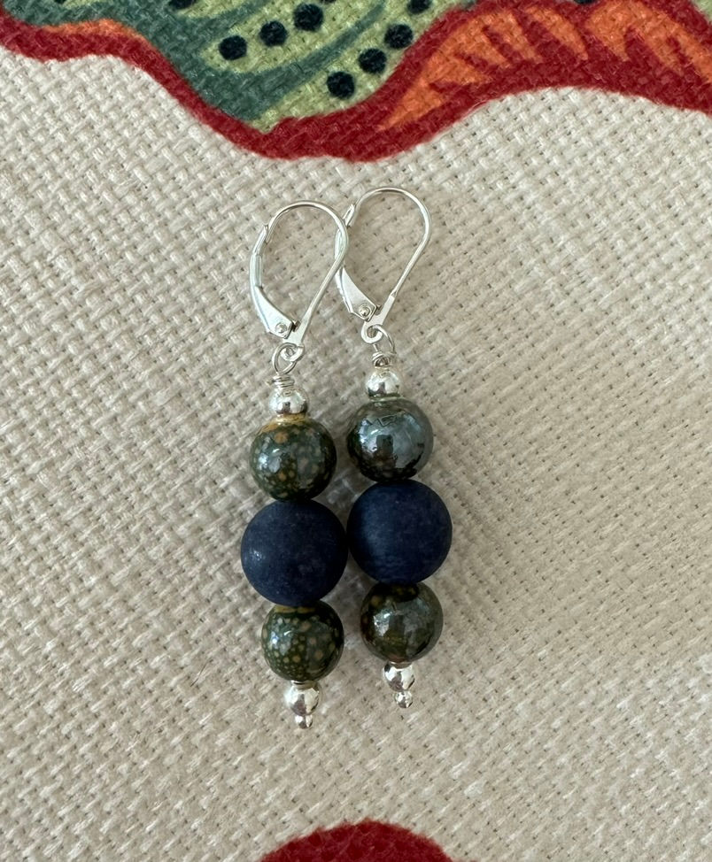Green Speckled Czech Glass & Aventurine Earrings with Sterling Silver